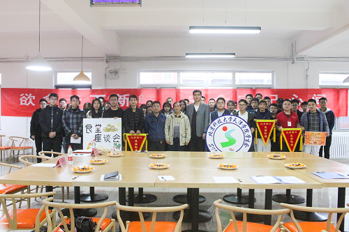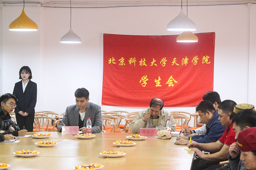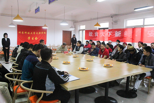 2018年11月14日下午15:30,北京科技大學天津學院學生會常代共建委員會聯合后勤處,在二食堂舉辦以“欲食天下新鮮,安全牢記心間”為主題的食堂座談會,出席本次座談會的有后勤處飲食中心主任趙學權老師,學校食堂經理及工作人員和學生代表們。