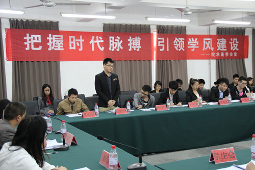 4月17日下午三點半,由院團委主辦、求是學會承辦的“天津學院青年學生的時代榮譽感暨學風建設研討會”在理工館209會議室召開,本次研討會以“把我時代脈搏、引領學風建設”為主題,在全院上下大力開展學風建設的背景下舉行,旨在通過研討會分析金沙城js93線路檢測中心學生尤其是學生干部的思想及學習狀況,討論如何在新時代下發揮學生干部的學習帶頭作用。院團委書記羅富臣、副書記潘柏夷、團委組織部長楊彩博及全院團學組織主要學生干部40余人參加了研討會。