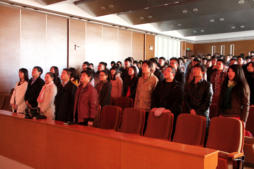 在全黨和全國人民的期盼中,中國共產黨第十八次全國代表大會于11月8日上午在北京人民大會堂如期召開。上午8時30分,北京科技大學天津學院團委組織團委干部及青年學生200余人在學院學術報告廳觀看了中國共產黨第十八次全國代表大會開幕儀式的現場直播盛況。大會開幕后,全場起立齊唱中華人民共和國國歌,胡錦濤總書記作報告時,大家熱切的目光聚焦在投影屏幕上,邊聽邊作著筆記。