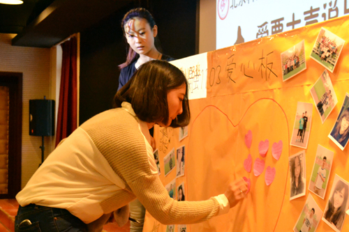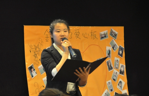 一段簡單的開場之后,孝心社張永康同學(xué)首先與大家分享了他對孝的理解。 “孝心,并非是長大后才有的責(zé)任,也并非是用金錢就能彌補(bǔ)”、“孝心其實(shí)很簡單,比如,為家里清掃一次房間;為母親倒一杯水;為父親捶一次背……”樸實(shí)的話語道出了他對孝的點(diǎn)滴體會(huì)。金融1103班班同學(xué)自己拍攝并制作的視頻記錄了他們對父母想說的話。孝心社劉曉通過自己的親身經(jīng)歷告訴了大家“行孝不能等”這個(gè)道理,很多同學(xué)聽完之后都默默的擦起了眼淚。李翔同學(xué)演唱的《父親》也深深的打動(dòng)了大家。部分同學(xué)的父母用電話錄音的方式表達(dá)了他們對于在遠(yuǎn)方求學(xué)的同學(xué)們的掛念和祝福。全班同學(xué)和著鋼琴伴奏共同演唱了《燭光里的媽媽》,歌聲傳遞了同學(xué)們對爸爸媽媽的祝福。活動(dòng)最后,同學(xué)們將自己對爸爸媽媽想要說的話寫在留言板上,一句句簡單的話表達(dá)了對父母真摯的愛。