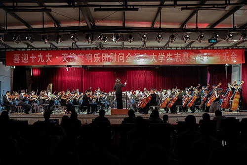 在黨的十九大即將召開之際,9月19日晚六點三十分整,由天津交響樂團帶來的“喜迎十九大·天津交響樂團慰問全運會大學生志愿者專場音樂會”在北京科技大學天津學院學生活動中心成功舉辦。北京科技大學天津學院黨委副書記葉振楠,教務處長張建華,國際交流處長柯瑜,法律系黨總支書記馮海燕,外語系黨總支書記張莉,團委書記殷實,藝術系副主任林碧蕓與學院師生一道欣賞了這精彩絕倫的藝術盛宴。