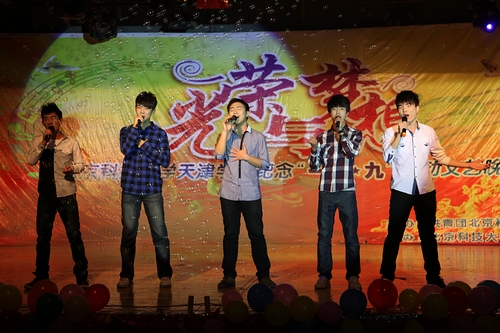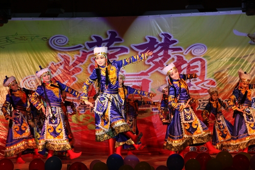 七點(diǎn)整,主持人熱情洋溢的開(kāi)場(chǎng)拉開(kāi)了整場(chǎng)晚會(huì)的序幕。春天永遠(yuǎn)是藝術(shù)家永恒的主題,首先登場(chǎng)的節(jié)目是管弦樂(lè)團(tuán)帶來(lái)的合奏《春之聲圓舞曲》。一曲獨(dú)唱《暗香》之后,管弦樂(lè)團(tuán)帶來(lái)的小合奏《賽馬》仿佛讓大家置身于寬廣的大草原上。戲劇社為觀眾獻(xiàn)上的小品《甄嬛外傳》,帶大家一同穿越,演繹了一場(chǎng)別開(kāi)生面的后宮爭(zhēng)斗戲,引得觀眾陣陣笑聲,掌聲不斷。濃郁的民族風(fēng)格,強(qiáng)烈的時(shí)代氣息,鮮明的地域特色,厚重的藝術(shù)氛圍,舞蹈團(tuán)帶來(lái)的蒙古舞蹈《塔林畢斯貴》讓大家感受到了蒙古族女性的端莊典雅、豪邁奔放。合唱團(tuán)的小合唱《年輕的戰(zhàn)場(chǎng)》給正值青春年華,年少輕狂的年輕人無(wú)限鼓舞。民樂(lè)合奏《遠(yuǎn)情》讓大家感受到了民族音樂(lè)的獨(dú)特氣息。舞蹈團(tuán)的熱舞《bad girl》把晚會(huì)推上了一個(gè)高潮。合唱團(tuán)的獨(dú)唱《掉了》以輕盈的風(fēng)格與電聲樂(lè)隊(duì)帶來(lái)的激情樂(lè)隊(duì)演繹形成鮮明對(duì)比,給現(xiàn)場(chǎng)觀眾帶了了不一樣的視聽(tīng)感受。晚會(huì)特邀民樂(lè)團(tuán)外聘指導(dǎo)老師石露云輝演繹嗩吶獨(dú)奏《陽(yáng)光》,石老師的精彩演繹博得觀眾陣陣掌聲。合唱團(tuán)帶來(lái)的歌曲串燒激情而又精彩,唱出了歌曲的靈魂。舞蹈團(tuán)的經(jīng)典獲獎(jiǎng)節(jié)目《映山紅》為黨的十八大勝利召開(kāi)獻(xiàn)上了光榮禮贊。晚會(huì)在合唱團(tuán)的男女對(duì)唱《天地在我心》的歌聲下落下帷幕。演出中還播放了藝術(shù)團(tuán)日常排練以及指導(dǎo)教師寄語(yǔ)的視頻短片,短片回顧了藝術(shù)團(tuán)在過(guò)去幾年取得的各項(xiàng)成績(jī),展望了未來(lái)的奮斗目標(biāo)。
