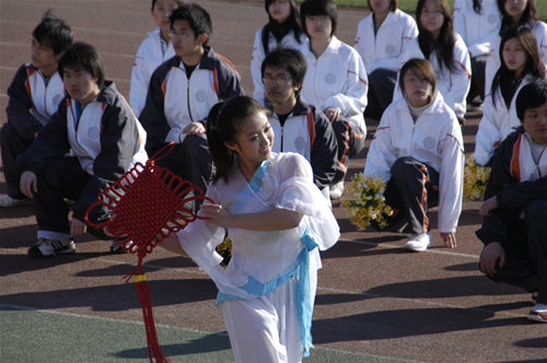 經濟系方陣代表手持中國結表演舞蹈