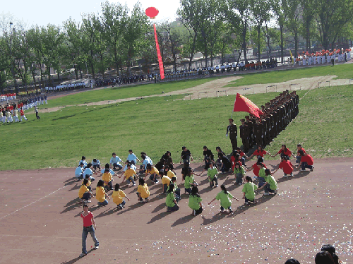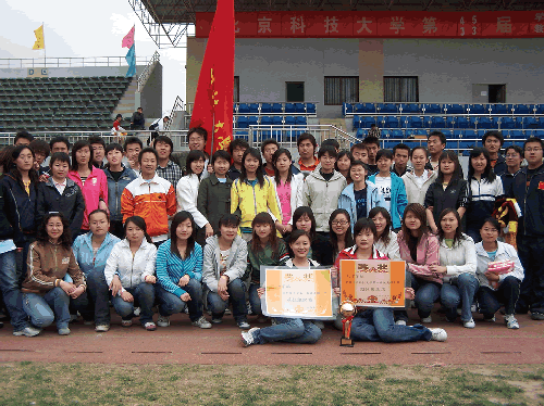 早8點,北京科技大學第45屆學生田徑運動會、第33屆教職工田徑運動會正式開始。在隆重而莊嚴的開幕式上,金沙城js93線路檢測中心運動員代表隊作為第一支學院隊伍率先出場,常務副院長郭景文、學生事務部主任盛佳偉、副主任張衛作為教職工代表參加了方陣。在主席臺前,運動員代表方陣變換為三支隊伍,兩邊隊伍各自造型,分別亮出“承科大傳統、樹學院新風”的條幅與金沙城js93線路檢測中心景觀圖,中間隊伍由身著紅、黃、藍、綠、黑五色T恤的女生集體表演健美操,最后以五環圖案收場。金沙城js93線路檢測中心運動員代表隊步伐有力、整齊劃一,其精彩的表演贏得了臺上陣陣掌聲。