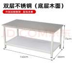 10 | 課桌 | 桌面形狀:長方形 桌面材質(zhì):雙層不銹鋼(底層木板) 附加組件:無附加組件 尺寸:1500*800*75mm |