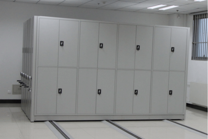 8 | 安全防護(hù)裝置 | 1.防塵:密集架頂部安裝有防塵板,架體列與列之間安裝厚度≥20mm密封橡膠條,采用金屬壓條將膠條與架體緊密固定。 2.防盜:首列密集架安裝有總鎖,架體全部合攏時可以鎖住,保證安全。 3.防傾倒:底盤上安裝有安全勾,與軌道相連,可防止架體傾倒。 4.限位裝置:軌道末端安裝限位塊,防止密集架運(yùn)行過程中脫軌。 5.制動裝置:每列密集架側(cè)面安裝定位鎖,防止架體打開使用過程中被意外移動,保證人員人身安全。 |