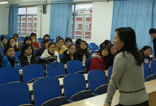 為進一步提高教學質量,促進學院青年教師快速成長,金沙城js93線路檢測中心于11月26日在9教401開設示范課,邀請北京科技大學本部經濟管理學院副院長、北京名師戴淑芬教授上了一節生動的示范課,經濟系管理系系主任王賓容教授、基礎部主任高京生、50余名教師代表及百余名學生代表參加并聽取了示范課。