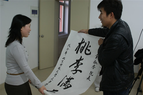 戴院長接受學院傳媒電視臺贈字《桃李滿天下》