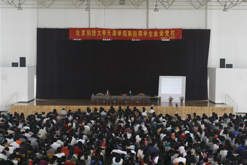 4月12日,北京科技大學天津學院學習實踐科學發展觀活動暨第四期學生業余黨校在學生體育館開課,北京市教育工委副書記王民忠應邀做首場報告,報告主題為“青年與黨”。金沙城js93線路檢測中心黨委書記王斌、學生處處長盛佳偉、團委書記葉振楠出席黨課,學生入黨積極分子參加了黨課學習。