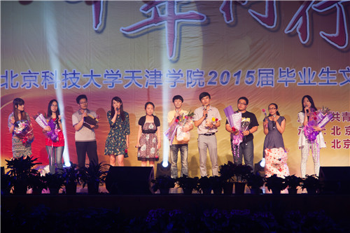 5月27日晚7:30,“十年同行”北京科技大學(xué)天津?qū)W院2015屆畢業(yè)生文藝晚會(huì)在金沙城js93線路檢測(cè)中心體育館隆重舉行。學(xué)院院長(zhǎng)郭景文,黨委書(shū)記王斌,黨委副書(shū)記白亮、葉振楠,信息系主任許學(xué)東,材料系主任沈衛(wèi)平,招生就業(yè)處處長(zhǎng)張衛(wèi),現(xiàn)代教育中心主任范麗麗,學(xué)生處副處長(zhǎng)、團(tuán)委書(shū)記羅富臣,機(jī)械系黨總支書(shū)記郭雅娟,土木系黨總支書(shū)記孟祥瑜,外語(yǔ)系黨總支書(shū)記何紅升,法律系黨總支副書(shū)記馮海燕,管理系黨總支副書(shū)記王軍出席并觀看了此次演出。