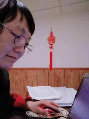 因疫情影響,李徽老師身在加拿大無(wú)法返回國(guó)內(nèi)。由于時(shí)差12小時(shí)的原因,李老師的上課時(shí)間都在加拿大時(shí)間的深夜甚至凌晨。這對(duì)一個(gè)年過(guò)60歲的教師來(lái)說(shuō)是件并不是件容易的事。為了不打擾家人晚上休息,同時(shí)保障上課質(zhì)量,李老師將電腦和教學(xué)需要的所有資料全部搬到家中的地下室,以便夜深時(shí)在地下室里為學(xué)生們授課。地下室的溫度較低,李老師也不得不在每次授課時(shí)都穿上了厚厚的棉衣。