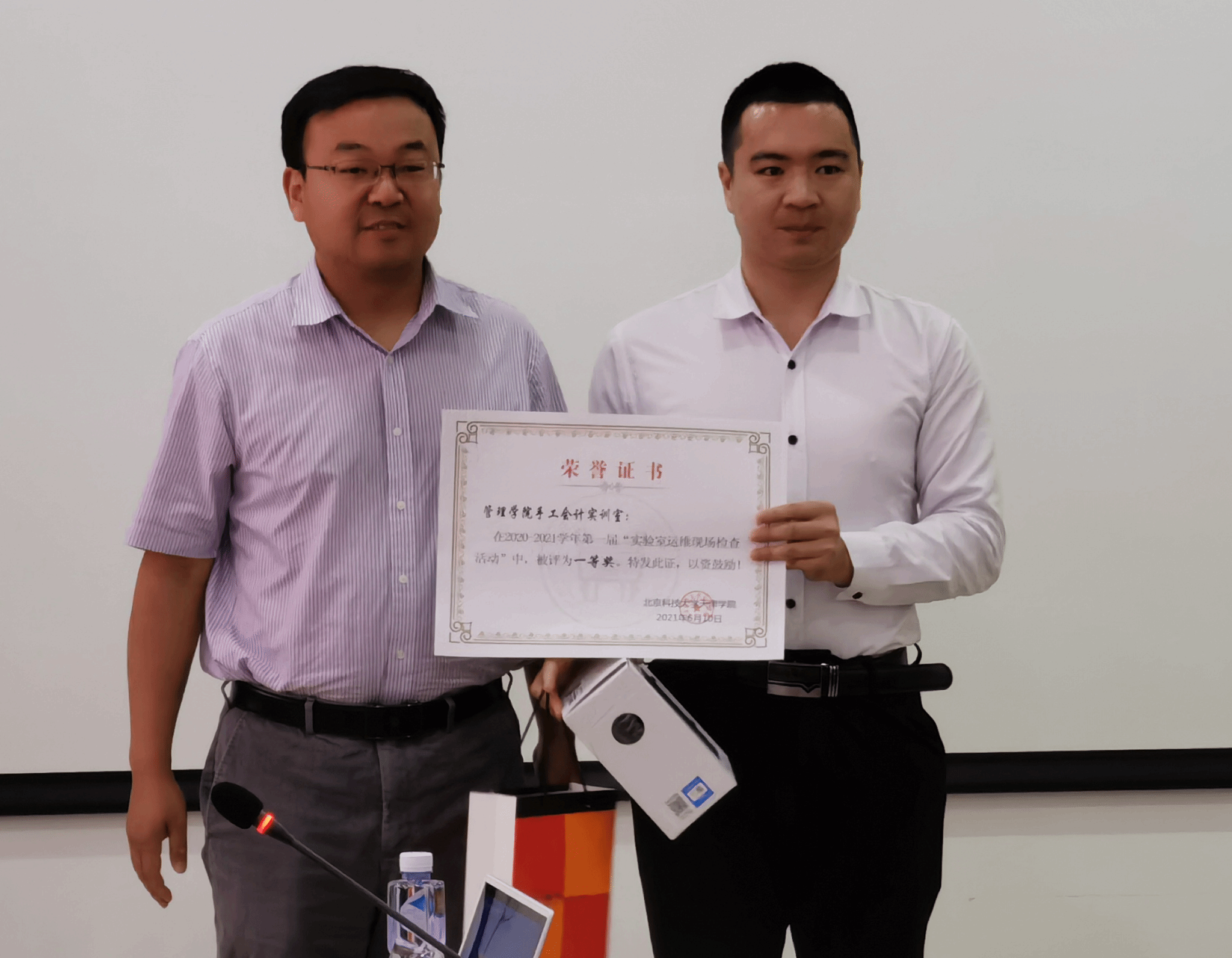 此次運維檢查活動頒獎儀式于6月10日上午10點在12教300會議室舉行,運行維護科科長王偉冬主持頒獎儀式,由黨委副書記牛犁、教務長張建華、實驗室管理中心主任陳寶江、實驗室管理中心副主任張利依次頒發一等獎、二等獎、三等獎并合影留念。
