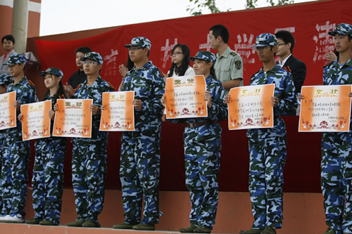 軍訓(xùn)結(jié)業(yè)評(píng)比獲獎(jiǎng)方陣代表上臺(tái)領(lǐng)取獎(jiǎng)狀