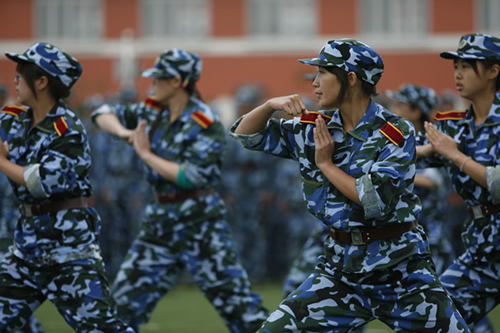 軍訓(xùn)科目匯報(bào)表演:女兵方陣軍體拳表演