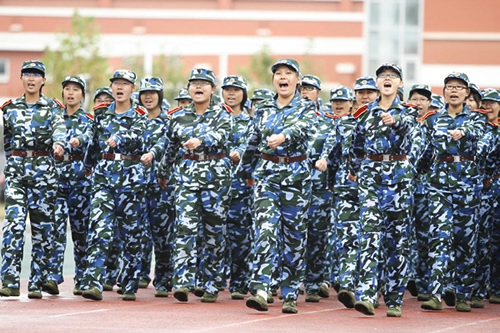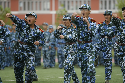 全體軍訓(xùn)團(tuán)學(xué)員整齊列隊(duì),精神抖擻