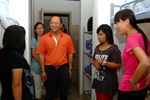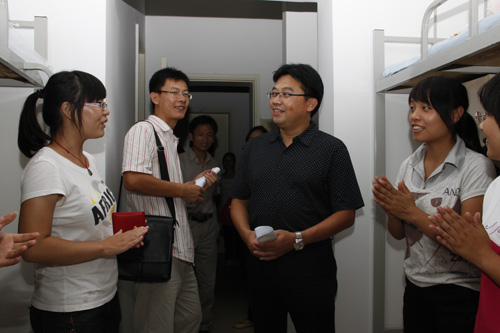 9月4日晚,院長郭景文、黨委書記王斌、副院長曹連東、財(cái)務(wù)總監(jiān)肖組剛在相關(guān)職能部門負(fù)責(zé)人的陪同下走訪了新生宿舍,了解他們?nèi)雽W(xué)以來的生活、學(xué)習(xí)情況。
