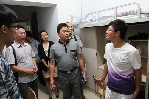 9月3日晚,院長郭景文、黨委書記王斌、副院長曹連東、財務總監王合軍、黨委副書記盛佳偉在相關職能部門負責人的陪同下走訪了新生宿舍,了解他們入學以來的生活、學習情況。