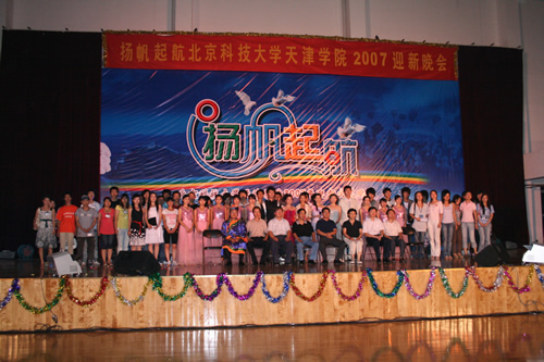 9月1日晚,“揚帆遠航”2007迎新晚會在體育館舉行,本次晚會由團委主辦,學生藝術(shù)團承辦,學生會協(xié)辦。黨委書記、常務副院長郭景文、黨委副書記、副院長王斌、學生事務部主任盛佳偉、圖書館館長劉淑娥、基建后勤部副主任王興元、學生事務部副主任葉振楠出席了晚會。