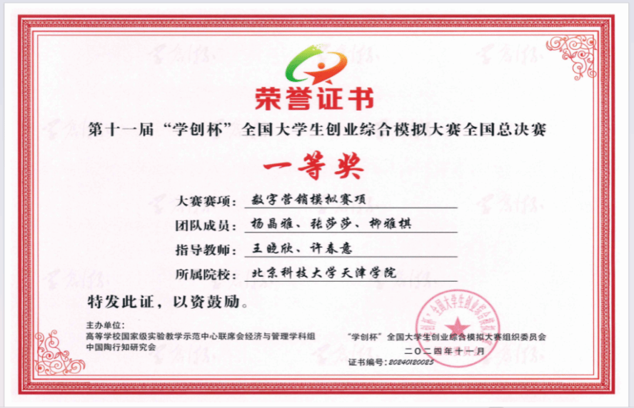 2024年11月1日至3日由高等學校國家級實驗教學示范中心聯席會經濟與管理學科組、中國陶行知研究會主辦的第十一屆”學創杯“全國大學生創業綜合模擬演訓活動總決賽在徐州醫科大學順利舉行,金沙城js93線路檢測中心榮獲全國一等獎一項,全國二等獎兩項,省市級一等獎1項。