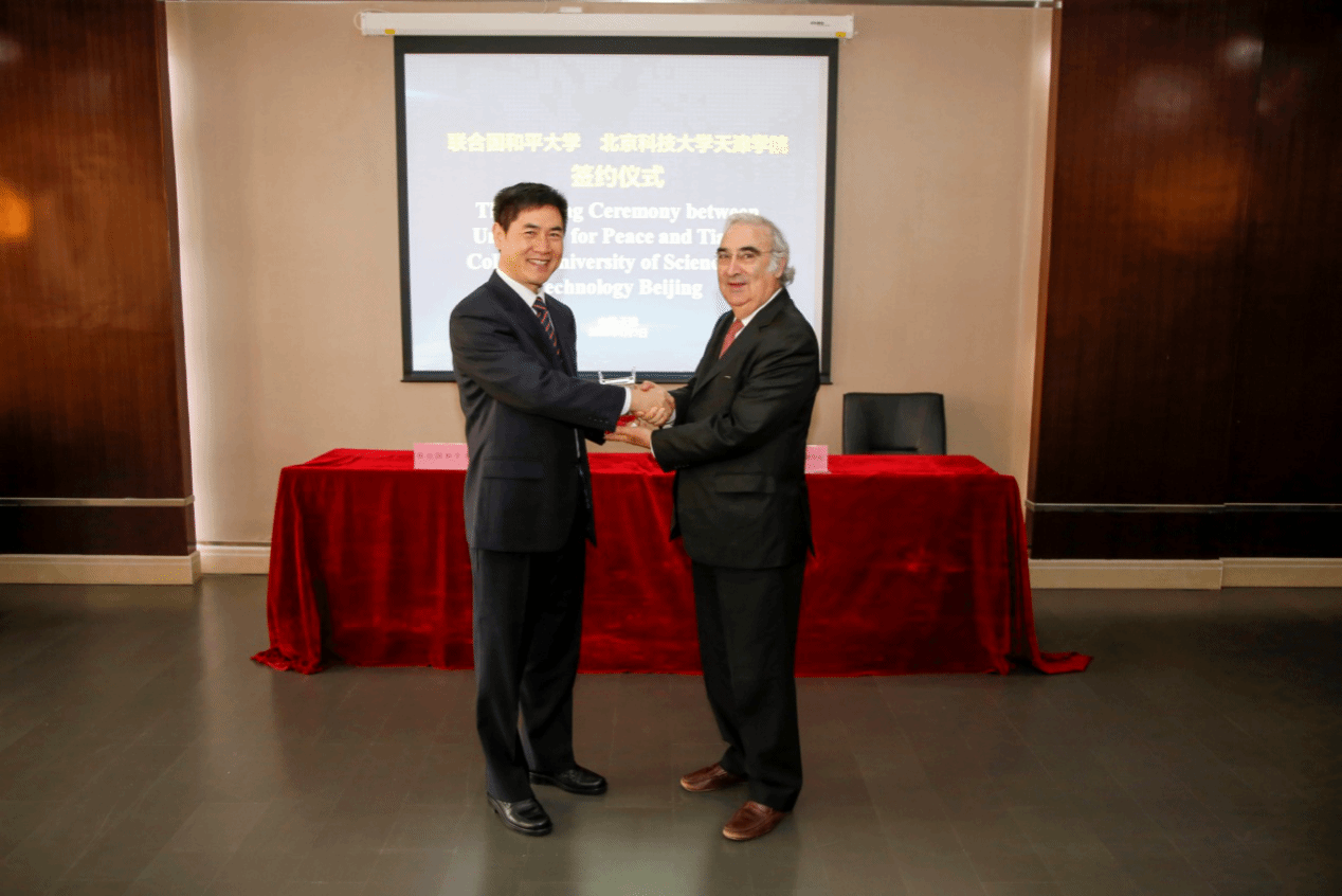 1月3日上午,聯(lián)合國和平大學與北京科技大學天津?qū)W院合作簽約儀式在金沙城js93線路檢測中心舉行。和平大學校長Francisco Rojas Aravena,聯(lián)合國和平大學校董、中國國際跨國公司促進會常務副會長張笑宇,聯(lián)合國和平大學中國中心總干事張馨元,珠江控股集團副總裁丁文,珠江股份集團教醫(yī)事業(yè)部運營總監(jiān)張靜,天津?qū)W院院長王斌,黨委書記丁煦生,副書記白亮、葉振楠、牛犁,財務總監(jiān)王俊敏,學術(shù)委員會主席宋存義以及相關(guān)部門負責人出席簽約儀式。