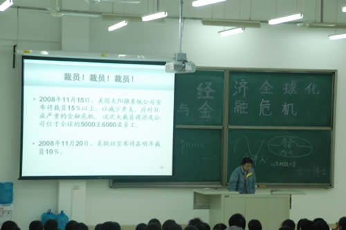 于博士在講座中強(qiáng)調(diào)經(jīng)濟(jì)危機(jī)帶來挑戰(zhàn)的同時(shí)也帶來了機(jī)遇,作為當(dāng)代大學(xué)生應(yīng)當(dāng)抓住機(jī)遇,努力學(xué)習(xí),為自己的成長創(chuàng)造條件,體現(xiàn)自身的價(jià)值。最后講座在同學(xué)們的掌聲中圓滿結(jié)束。