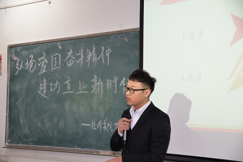 2018年12月5日晚19點,由經(jīng)濟學院學生第一黨支部舉辦的“弘揚愛國奮斗精神,建功立業(yè)新時代”主題學習經(jīng)驗交流會在9教102教室順利舉行。本次經(jīng)驗交流會主要面向18級金融工程專業(yè)同學,幫助他們在大學生活一開始就懂得學習的重要性,應該把學習放在第一位,讓他們能夠認清嚴峻的就業(yè)形勢,找準自己的定位,更快、更高效的學習。