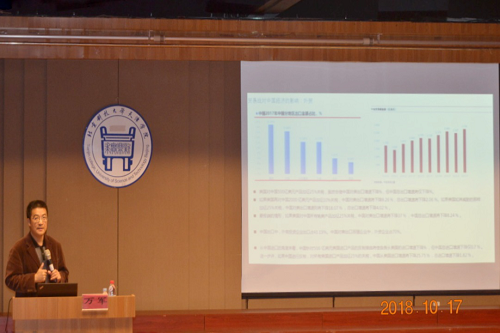為加深同學們對中美貿(mào)易戰(zhàn)的了解和認識,體會所學知識在現(xiàn)實中應用,2018年10月17日,經(jīng)濟學院特邀中國社會科學院世界經(jīng)濟與政治研究所萬軍博士以“中美貿(mào)易戰(zhàn)對中國經(jīng)濟的影響”為主題到金沙城js93線路檢測中心作講座。經(jīng)濟學院院長段文斌、思政部主任陳宏、經(jīng)濟學院黨總支副書記閆謖,經(jīng)濟學院及思政部全體老師,與200余名同學共同聆聽了講座。