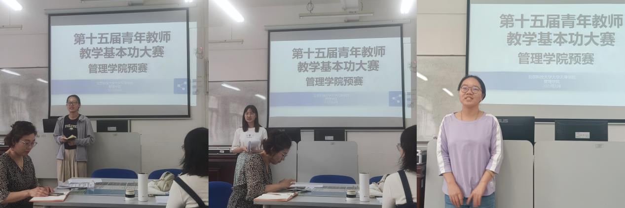 最后,管理學院三位新教師王玉歡、董歆迪、劉嘉琳發表了對旁聽和學習青年教師教學基本功大賽的感想和體悟。此次活動充分發揮了管理學院教師“傳幫帶”的優良傳統,有助于新教師快速融入管理學院,近距離和優秀教師學習,發現不足,改善和提高自身教學水平。