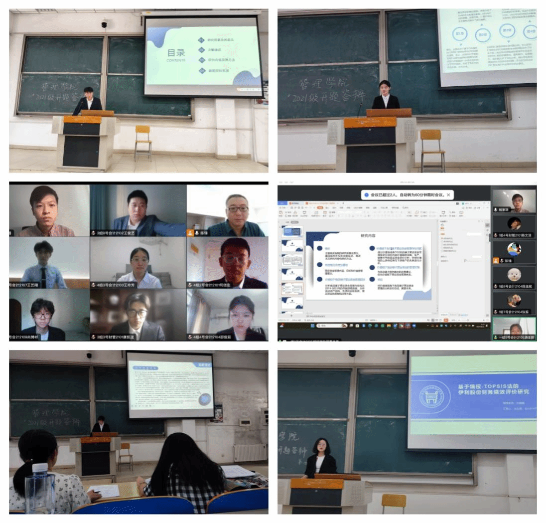 答辯中,同學(xué)們分別就選題背景、意義及依據(jù),研究目標、研究內(nèi)容、研究方法、進度安排等方面進行了詳細認真地闡述和說明。開題評議小組教師根據(jù)學(xué)生的匯報情況,指出了開題答辯中存在問題,對選題背景及意義、研究思路、研究內(nèi)容和方法均給出了中肯的建議和意見,指出同學(xué)們在開題報告撰寫當中的存在問題并提出了下一階段的任務(wù)和要求。同時,管理學(xué)院對于論文選題不成熟及論文寫作質(zhì)量較差的學(xué)生分不同答辯小組進行二次答辯,意在通過二次答辯與指導(dǎo)教師共同形成教育合力對學(xué)生的論文寫作工作進行再督促及有效改進。