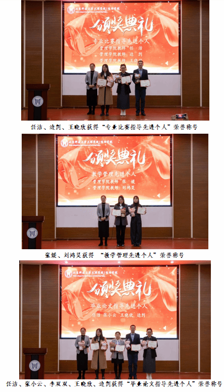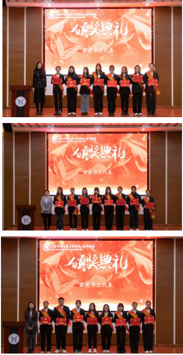 此次表彰大會分別對學院榮獲“教學比賽先進個人”、“學生工作先進個人”等9個類別獎項的教師,以及榮獲各類獎學金和榮譽稱號的學生代表和集體進行了表彰。