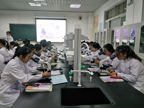 11月21日下午護理系醫(yī)學基礎(chǔ)實驗課正式開課。教務(wù)處長張建華老師與韓苗苗老師親臨5-105《人體形態(tài)學》實驗室觀摩了賈明昭教授的實踐課,并給予高度評價。