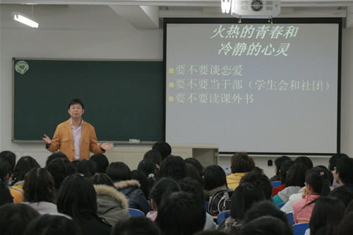 3月18日晚7點(diǎn)半,在8教201室舉行了考研英語專場(chǎng)講座,本次講座由外語系主辦,主講人為新東方教師戴云,來自金沙城js93線路檢測(cè)中心05、06級(jí)的200余名學(xué)生參加了講座。會(huì)上,戴老師就同學(xué)們較為關(guān)注的英語學(xué)習(xí)問題與同學(xué)展開交流,現(xiàn)場(chǎng)氣氛十分熱烈。