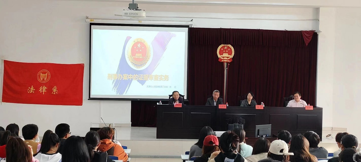 10月27日下午3點,法律系法學論壇系列講座第三期活動在模擬法庭如期舉行。本次論壇邀請?zhí)旖蚴腥嗣駲z察院第三分院陳莉檢察官,為師生們帶來“刑事辦案中的證據(jù)審查實務(wù)”專題講座。講座由法律系常務(wù)副主任邢曉暉教授主持,上海靖予霖(天津)律師事務(wù)所副主任、法律系實踐導師張振陟律師和法律系劉國平老師擔任與談嘉賓,法律系教師和200多名學生共同聆聽了這場實務(wù)講座。