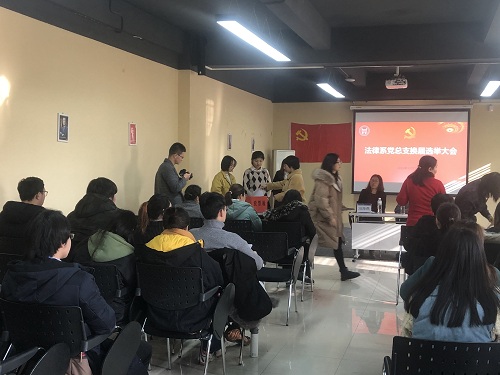 大會在莊嚴(yán)的《國歌》聲中拉開序幕。馮海燕同志代表法律系黨總支部委員會向大會做了工作匯報,全面總結(jié)了三年來黨總支在黨建、思想政治工作和學(xué)科建設(shè)等方面的情況,并對法律系未來三年發(fā)展提出總體展望。隨后,大會審議通過了選舉辦法、總支委員和總支書記候選人名單,總監(jiān)票人和監(jiān)票人名單。在總監(jiān)票人夏小茹同志的主持下,按照工作程序,與會黨員以無記名投票方式差額選舉產(chǎn)生了新一屆法律系總支委員會。