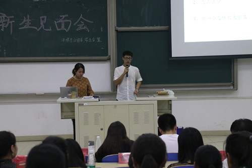 會議在潮水般的掌聲中拉開了帷幕,首先由新生軍訓導員方潔老師發表演講,方潔老師殷切的表達了對新生的寄托與期待,希望每個新生都能擁有一個美好而又難忘的大學生活。隨后,學習部向新生分發了由優秀學長學姐總結的學習經驗,對新生以后的學習之路有一個最初的指導,用自己的經驗告訴學弟學妹大學生活的美好。接下來法律系分團委、學生會對新生做了社團介紹,讓新生對大學的社團生活有了更清楚的認識。分團委書記趙慧敏老師和2016級導員陳旭從大學生活、紀律意識、規矩等方面對新生進行了有益的教育和殷切的叮囑。最后,各位新生以提問的方式與各位學長學姐進行交流。會議在一片溫馨和諧的氛圍中落下帷幕。