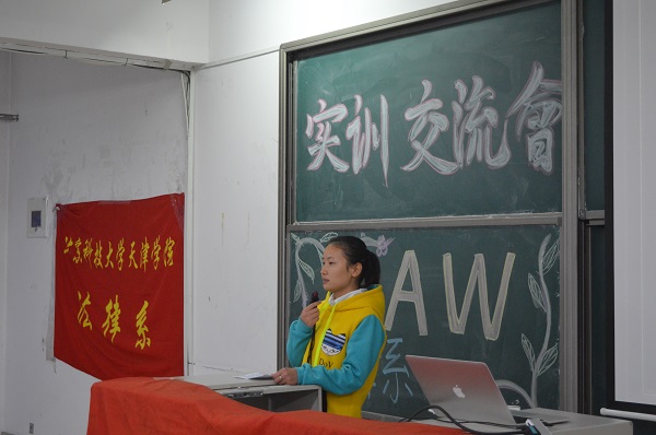 會(huì)議開始,王老師向大家介紹了法律系學(xué)生開展專業(yè)實(shí)習(xí)目的、內(nèi)容、意義,重點(diǎn)說明了實(shí)習(xí)是對(duì)理論知識(shí)的驗(yàn)證,強(qiáng)調(diào)了法律人應(yīng)具備的職業(yè)能力和職業(yè)素養(yǎng),希望通過本次交流會(huì)能夠提升大家對(duì)法律專業(yè)學(xué)習(xí)興趣,明確學(xué)習(xí)目標(biāo),為就業(yè)做好規(guī)劃。接著,由在寶坻區(qū)人民法院實(shí)習(xí)的10名同學(xué)先后上臺(tái)與大家分享了自己所完成的任務(wù)、一些比較記憶猶新的事件以及兩個(gè)月的實(shí)踐心得。他們?cè)趯氎鎱^(qū)法院派出的六個(gè)法庭中進(jìn)行了對(duì)卷宗的整理、裝訂、掃描,對(duì)庭審案件的旁聽等,充分了解了基層法院的案件特點(diǎn),親身體驗(yàn)了基層法院的工作與生活,收獲了屬于自己的獨(dú)特感悟。正如張芳同學(xué)所言,法庭實(shí)踐與課本知識(shí)以及自己的想象有很大不同,希望大家能夠好好學(xué)習(xí)專業(yè)知識(shí),積極參加專業(yè)實(shí)習(xí)活動(dòng)。最后,由王超老師對(duì)本次活動(dòng)進(jìn)行總結(jié),她結(jié)合個(gè)人經(jīng)歷再次向大家強(qiáng)調(diào)了專業(yè)實(shí)習(xí)的重要性,并希望大家能夠珍惜每一次實(shí)習(xí)機(jī)會(huì),為成為一名合格的法律人而不懈努力。