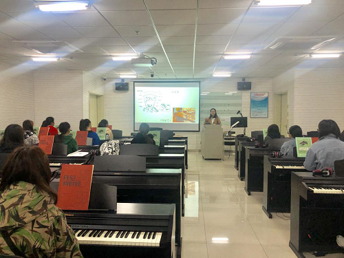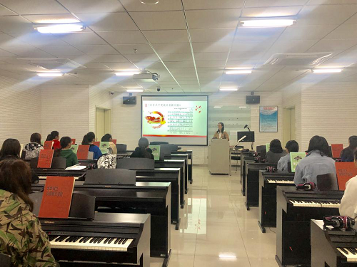 為扎實開展好“不忘初心、牢記使命”主題教育,貫徹落實學院以“四個一”為載體,為身邊群眾至少辦一件實事好事的部署,10月22日下午,藝術學院的何藝源老師代表藝術學院鋼琴教研室教工黨支部為北京市大興區(qū)保利茉莉公館小區(qū)中從事幼師學前教育的老師們、音樂愛好者及一些年輕群眾進行了一次普及音樂知識的教學和唱響紅歌活動。