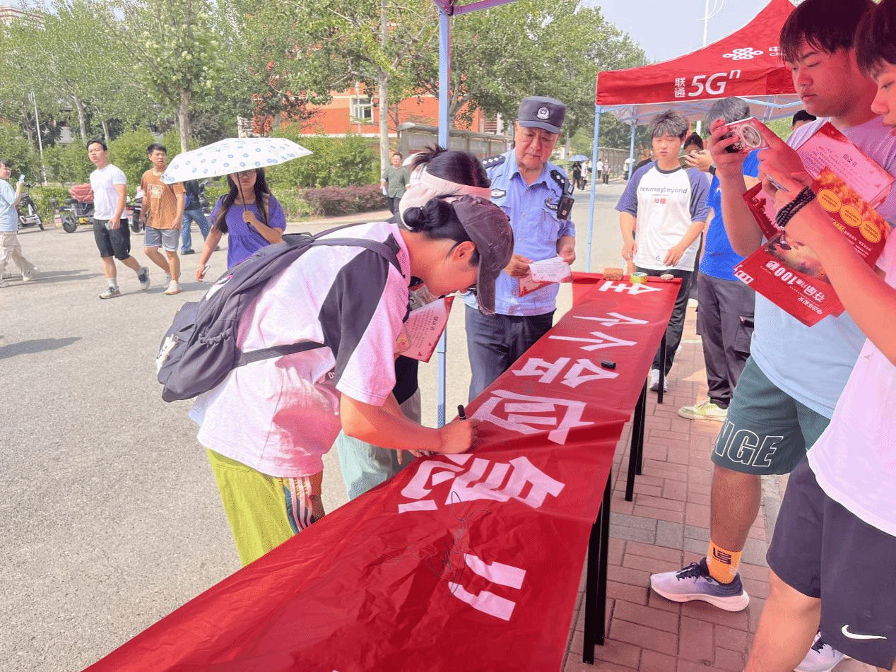 隨著下課鈴聲到來,京津新城消防救援站的指戰員、新城派出所民警、學院保衛處工作人員和學生安全志愿者一起走上校園街頭,發放“暢通生命安全通道倡議書”,邀請廣大師生參與“安全承諾踐諾簽名活動”,爭做平安天院的建設者。