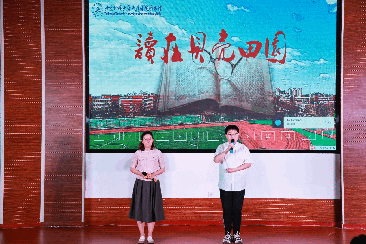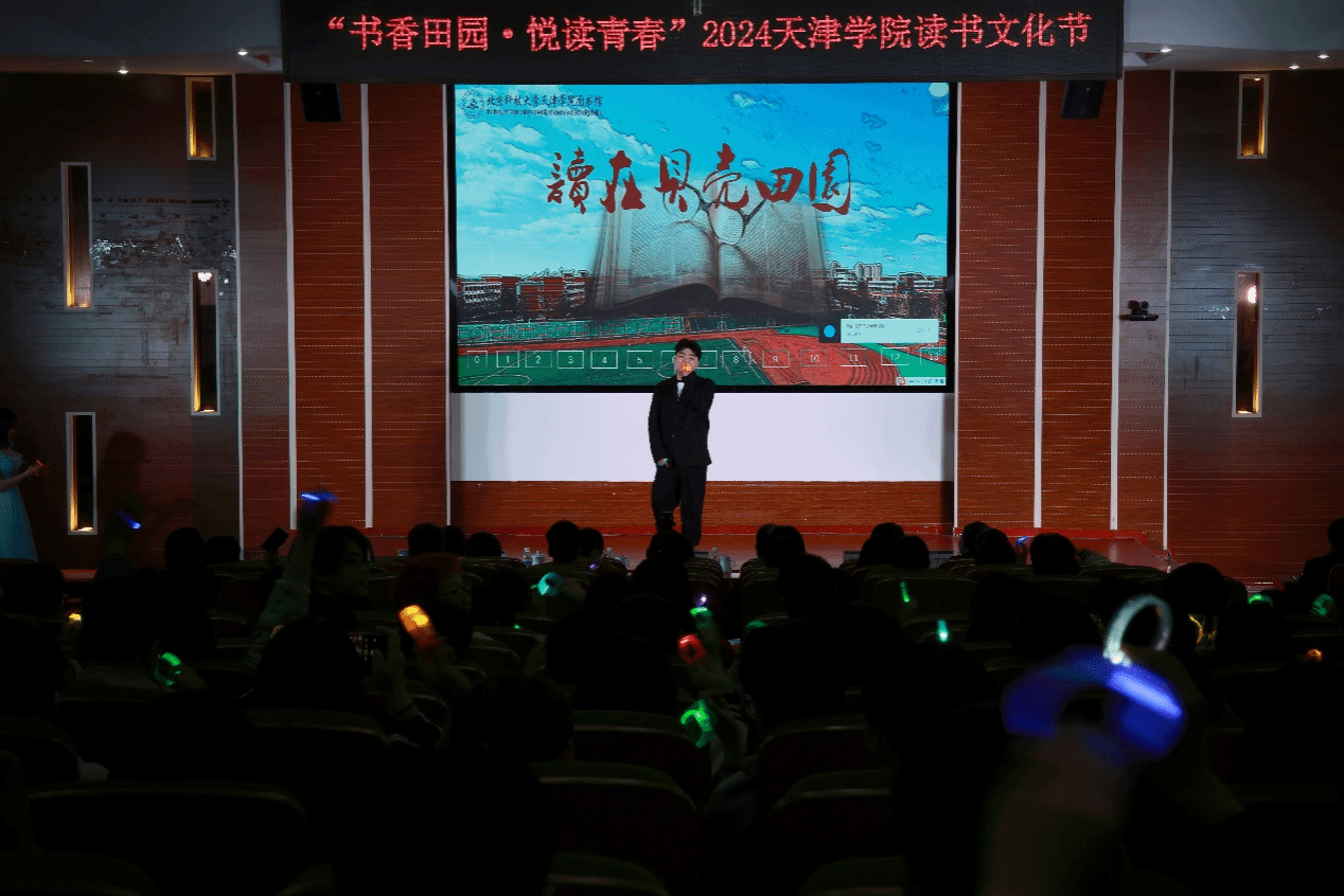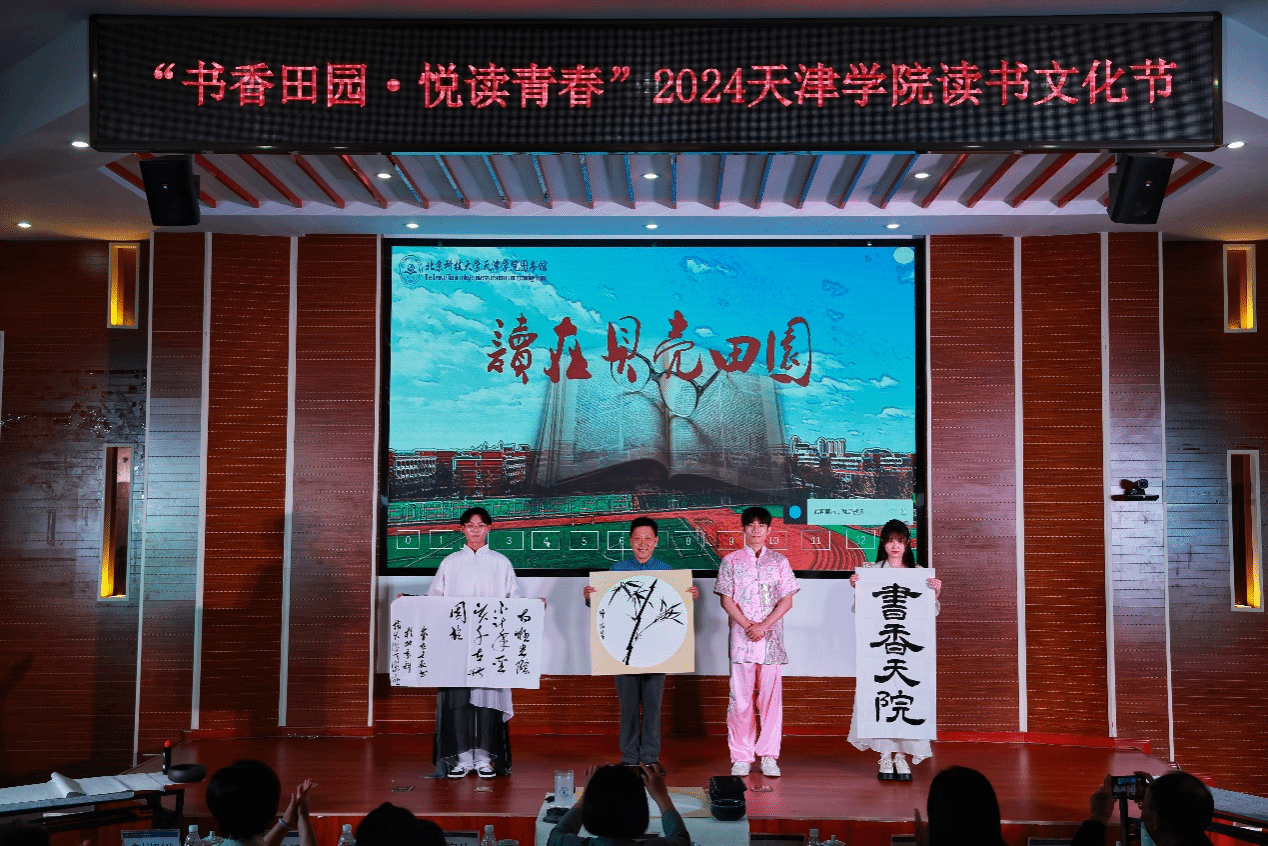 2024年4月23日晚7:00,圖書館在理工館學(xué)術(shù)報告廳成功舉辦“書香田園·悅讀青春”主題讀書文化節(jié)晚會。寶坻區(qū)文化和旅游局局長吳慶娟、副局長張英,寶坻區(qū)圖書館館長孫鳳婷,文化館館長倪芳芳,北京科技大學(xué)天津?qū)W院院長丁煦生,學(xué)院各部門負(fù)責(zé)人、圖書館全體館員以及來自各院系師生300余人參加了晚會。