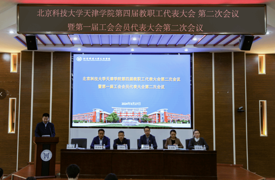 3月27日,北京科技大學(xué)天津?qū)W院第四屆教職工代表大會第二次會議暨第一屆工會會員代表大會第二次會議在理工館學(xué)術(shù)報告廳隆重召開。學(xué)院院長丁煦生、黨委書記葉振楠、副院長張永鋒、副院長兼財務(wù)總監(jiān)王俊敏、黨委副書記、工會主席郭雅娟及教代會、工代會代表參加本次會議,會議由黨委副書記趙志南主持。