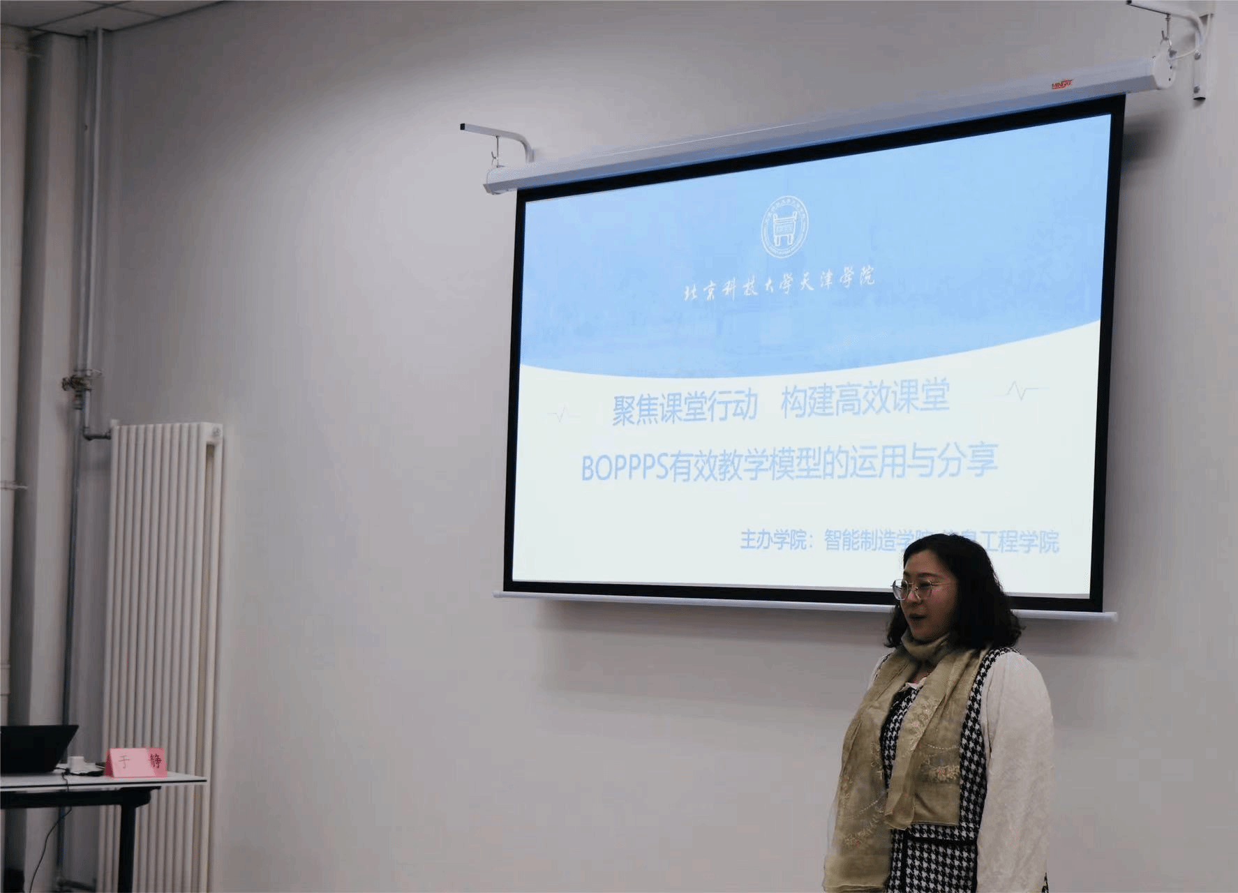 班嵐老師做了開場介紹,從學(xué)院內(nèi)涵式高質(zhì)量發(fā)展的指導(dǎo)思想角度切入,引出本次研討會(huì)的主題“聚焦課堂行動(dòng),構(gòu)建高效課堂—BOPPPS有效教學(xué)模型的運(yùn)用與分享”;于靜老師就“教無定法”、“孤芳自賞”的現(xiàn)象,指出了老師們在教學(xué)過程中存在的一些問題;智能制造學(xué)院孫沛葉老師和信息工程學(xué)院王琳老師分別以十分鐘微課形式演示了BOPPPS教學(xué)模型,兩位青年教師授課內(nèi)容豐富生動(dòng)、深入淺出、引人入勝;兩位評(píng)委老師及與會(huì)老師,對(duì)孫沛葉和王琳兩位老師的微課進(jìn)行了客觀詳盡的剖析和點(diǎn)評(píng),充分肯定了兩位老師對(duì)BOPPPS有效教學(xué)模型的運(yùn)用,同時(shí)提出了諸多建設(shè)性意見。
