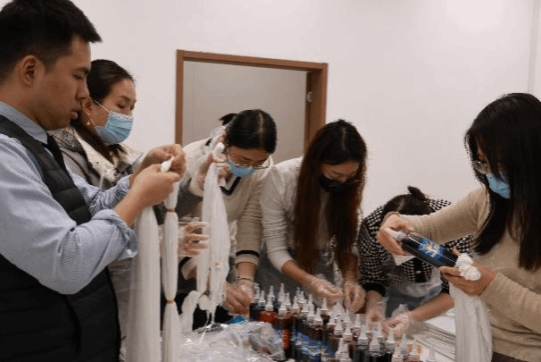 通過親自動手,大家根據自己的喜好和創意,對提前準備好的絲巾進行“扎”與“染”等一系列操作,一扎一染,一浸一潤,一條潔白的絲巾染上斑斕的色彩,每一幅獨一無二的作品,展現了大家對美的理解和追求,蘊藏著勞動的智慧與創造力。