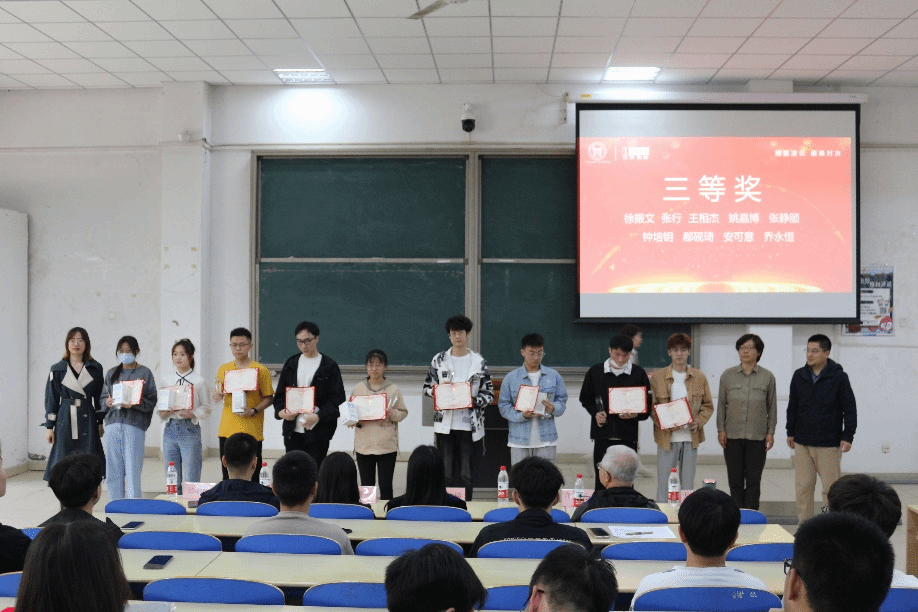 其次頒布的是此次大賽三等獎獲得者,由學院產學研辦公室主任彭鵬、信息工程學院副院長于靜,以及中軟國際天津公司天津區域總監任孝媛為獲獎者頒獎;
