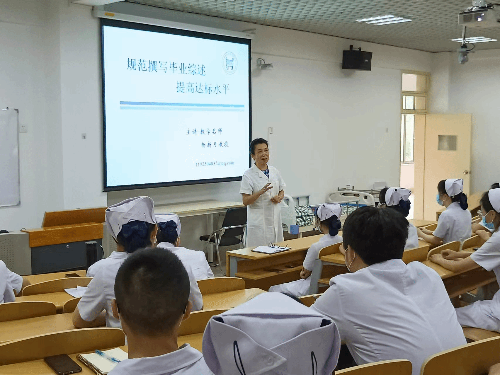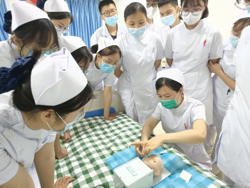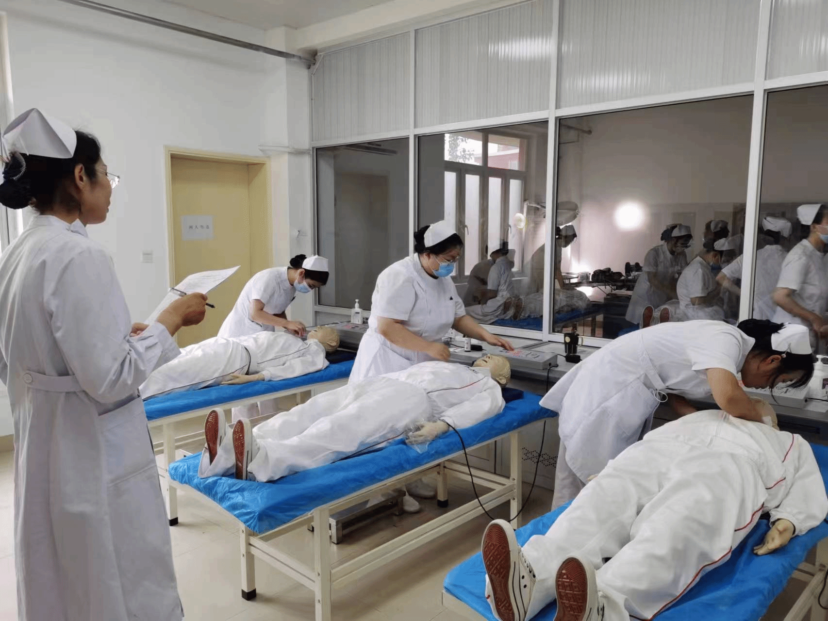 護(hù)理系楊新月主任親自承擔(dān)專題講座,全體教師在楊新月主任的領(lǐng)導(dǎo)與影響下,加班加點(diǎn)、有條不紊地推進(jìn)學(xué)生在校的教學(xué)計(jì)劃,提前將護(hù)理操作的視頻、操作流程以及評(píng)分標(biāo)準(zhǔn)發(fā)給學(xué)生,要求做好預(yù)習(xí),同時(shí)按照以往要求,嚴(yán)格檢查學(xué)生儀容儀表和著裝,以護(hù)士行為準(zhǔn)則規(guī)范學(xué)生行為,提倡理論與示教相結(jié)合,重視示范操作、強(qiáng)化練習(xí)和考核,將實(shí)訓(xùn)室作為病房,模擬人為病人,以分組練習(xí)和個(gè)別指導(dǎo)的方式,保證操作的準(zhǔn)確性。學(xué)生們的學(xué)習(xí)熱情高漲,大家已經(jīng)忘記了天氣的炎熱,將全身心投入到每一堂課,以便更好地掌握理論和操作技能。