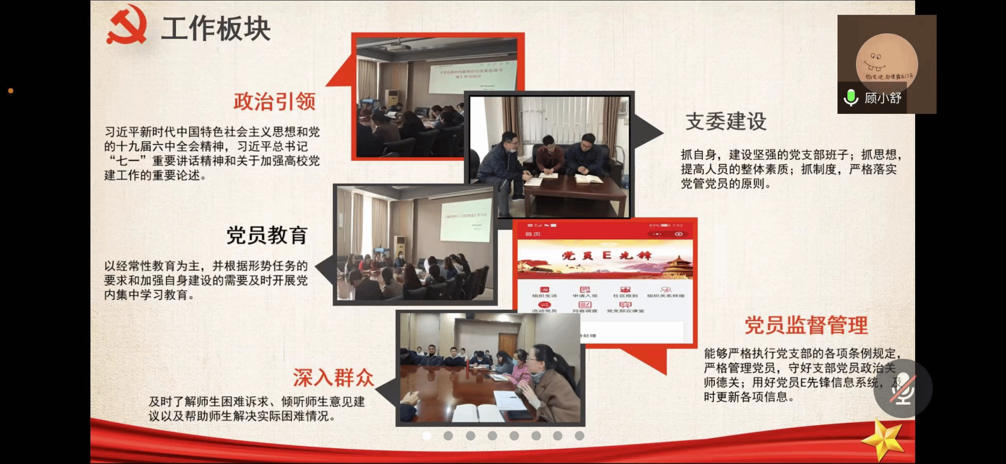 各支部書記述職后,黨委副書記牛犁同志分別對各支部書記述職情況進行了點評,對各黨支部書記的工作進行了充分肯定,并根據部分黨支部特色不足、理論學習情況不夠深入等問題,提出要進一步加強師生黨員的理論學習教育,深入體會黨組織文件的內涵,并與支部特色結合起來,更好地運用到實踐中去,更好地惠及廣大師生。