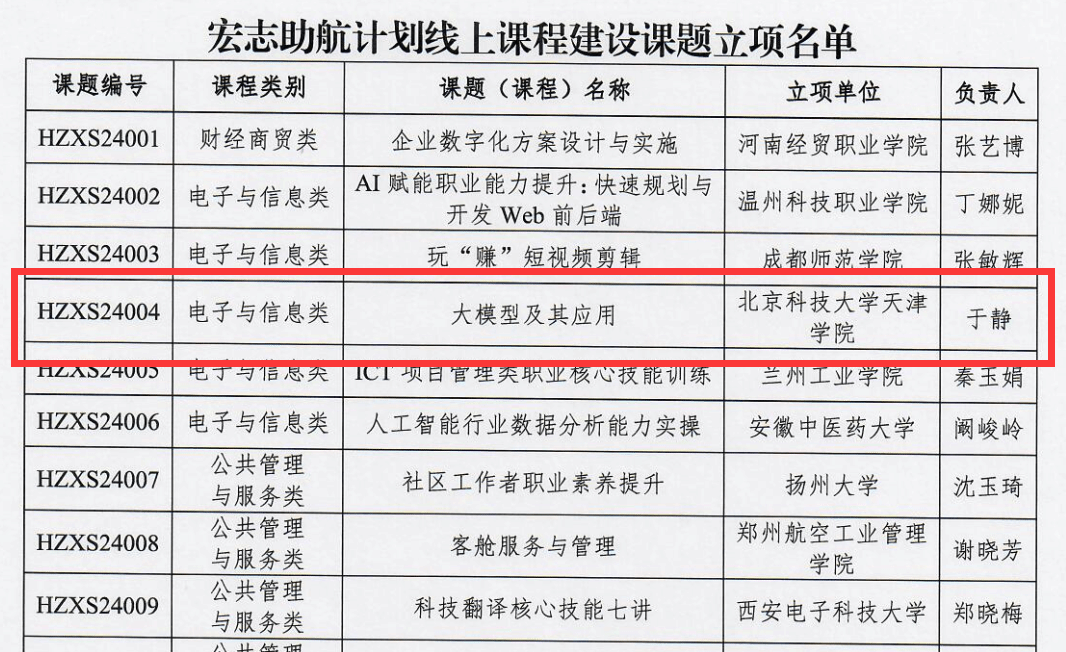 近日,教育部學生服務與素質發展中心公布“宏志助航計劃”線上課程建設課題立項名單,由信息工程學院副院長于靜教授主持申報的《大模型及應用》課程獲批立項,為我校首次獲得該項目立項。項目組成員來自無人系統與具...