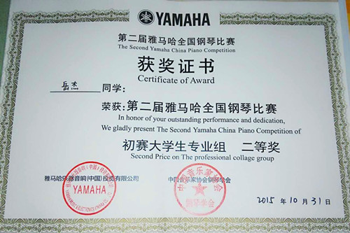 2015年10月,由中國音樂家協會鋼琴學會主辦的“第二屆雅馬哈全國鋼琴比賽”(天津賽區)在天津音樂學院音樂廳成功舉辦。金沙城js93線路檢測中心藝術系派學生代表參加了此次比賽。在比賽中由藝術系鋼琴教師梁晨指導的2014級學生岳杰力挽...