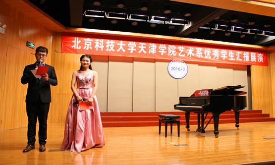 2016年3月30日,19:00時,北京科技大學天津學院藝術系優秀學生匯報展演在12教學樓弘藝音樂廳舉行。 整場音樂會共有24個節目,分別由藝術系2012級、2013級、2014級與2015級音樂表演專業的優秀學生進行專業成果展示。音...